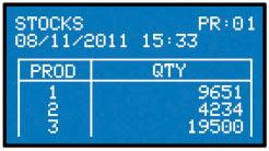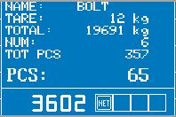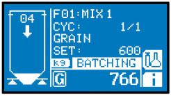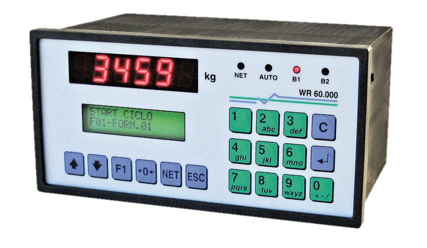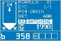 Enables the operator to perform a guided manual batching: the first line indicates the formula’s number and the gross weight; the second line indicates the product’s number and the quantity to be batched, that decreases to zero during the product loading.