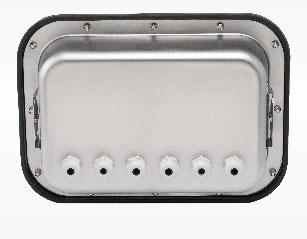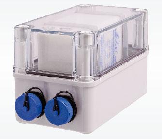 IP67 box in AISI 304 stainless steel or PA66 nylon reinforced with glass fiber (dimensions: 90x40x107 mm including flying connectors).