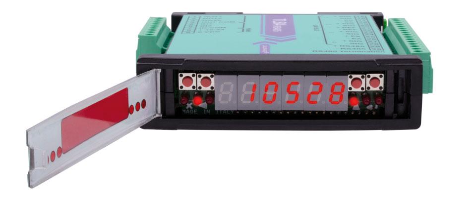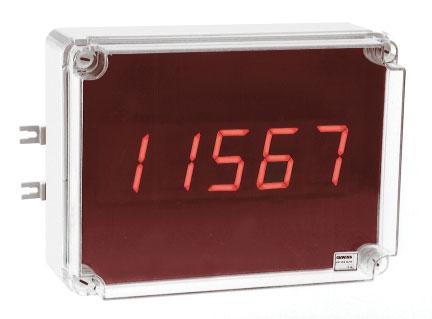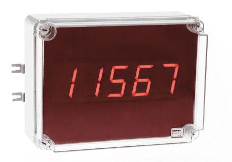 Remote display with big digits display, suitable for wall mounting. 5-digit semi-alphanumeric red LED display (57 mm height). Plastic box.