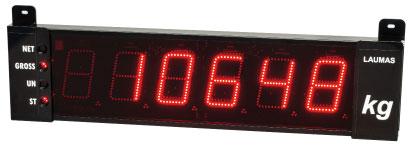 Remote display with big digits display, suitable for wall mounting. 6-digit semi-alphanumeric red SMD LED display (90 mm height).