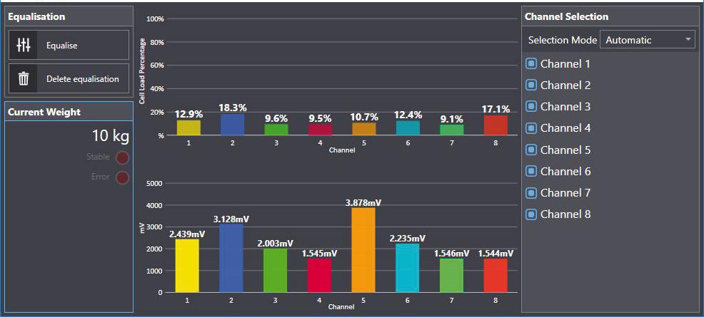 Theoretische Kalibrierung (über PC-Software) und reale Kalibrierung (mit Prüfgewichten und Linearisierung von bis zu 8 Messpunkten).