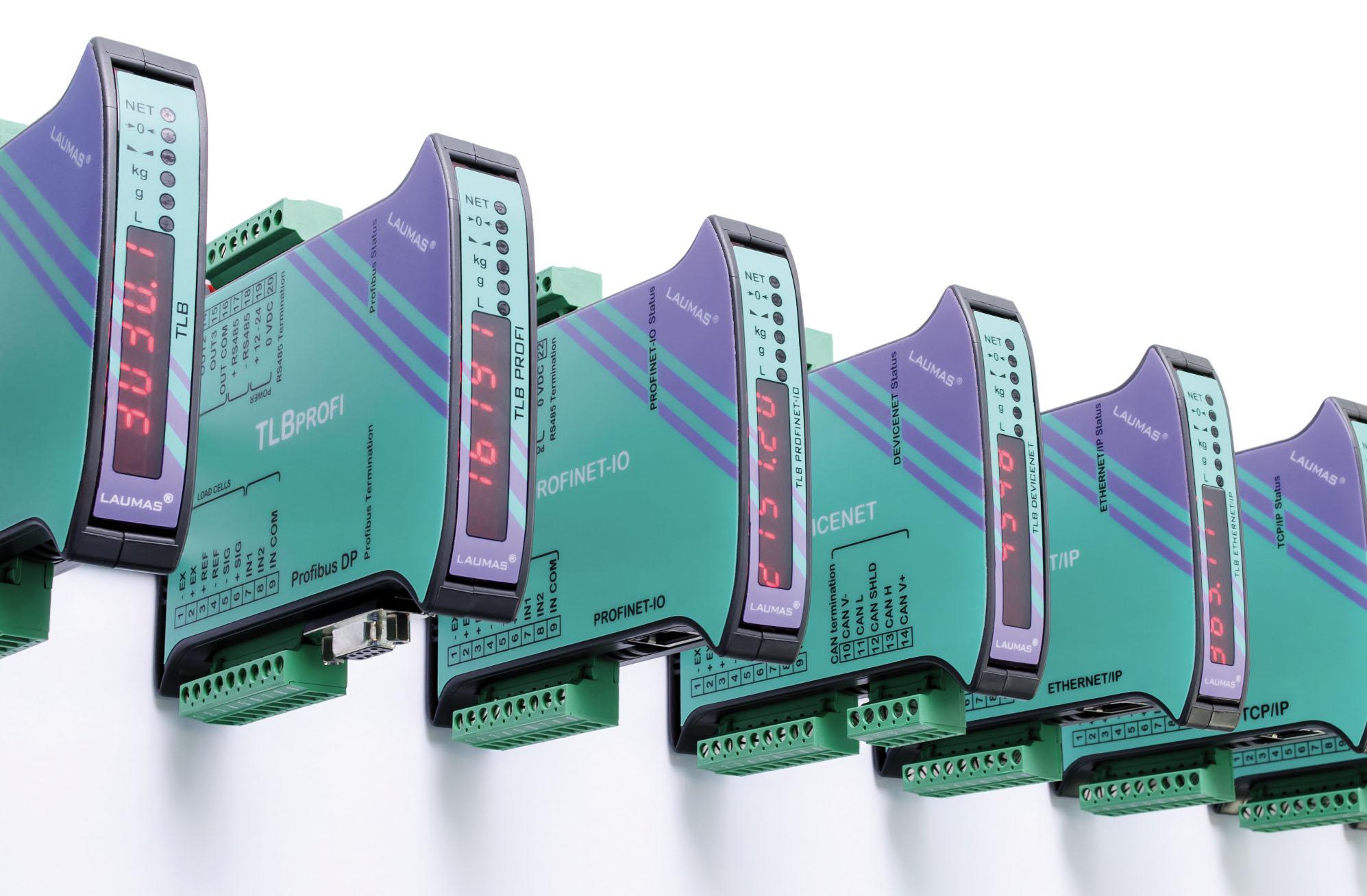 LAUMAS stellt Wägeindikatoren und Wägetransmitter her, die über die wichtigsten Feldbusse auf dem Markt Modbus RTU, Modbus TCP, PROFIBUS DP, PROFINET IO, Ethernet/IP, Ethernet TCP/IP, EtherCAT, POWERLINK, DeviceNet, CANopen, CC-Link, CC-Link IE, IO Link, SERCOS III usw.) an PCs und SPS der bekanntesten internationalen Marken (Siemens, Rockwell Automation, Allen-Bradley, B&R Automation, Omron, Beckhoff, Schneider, Panasonic, Mitsubishi, Bosch Rexroth, Vipa, ABB usw.) angeschlossen werden können.