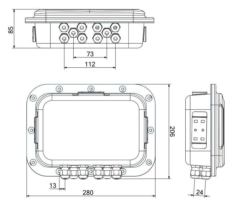 Montage: verkabelt oder am Wägezellengehäuse mittels Standard ¼ GAS-Anschluss befestigt (spezifische Adapter für andere Gewinde sind auf Anfrage erhältlich).