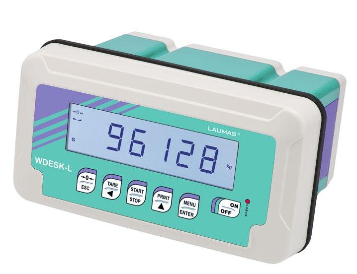 • WDESKL: ABS weight indicator, desk version with 6 M16x1.5 cable glands (dim.: 122x226x164 mm). IP67 protection rating. 6-digit backlit LCD semialphanumeric display (20 mm height), 7 segment - 46 indicator symbols.