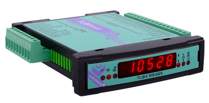 • TLB4: 6-digit red LED semialphanumeric display (8 mm height), 7 segment - 6 indicator LED. 4 buttons for the system calibration. 4 load cell dedicated inputs. 3 relay logic outputs, 2 optoisolated PNP logic inputs. RS485 serial port. Front panel or back panel mounting on Omega/DIN rail. Extractable screw terminal boards.
