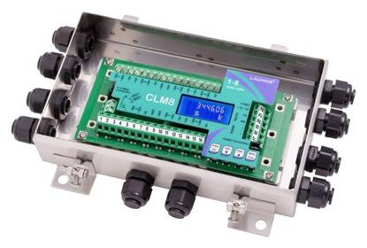 • CLM8: Display alfanumérico LCD retroiluminado, dos lineas de 8 dígitos (altura 5 mm), área visible: 38x16 mm. Teclado de 4 teclas. 8 entradas de células de carga. Puertos serie RS485/RS232. Dispositivo de protección contra rayos y descargas eléctricas. Disponible en las versiones: solo placa o versión para montaje en barra Omega/DIN en la parte trasera del panel o en caja; caja IP67 en policarbonato; caja IP67 de acero inoxidable AISI 304.