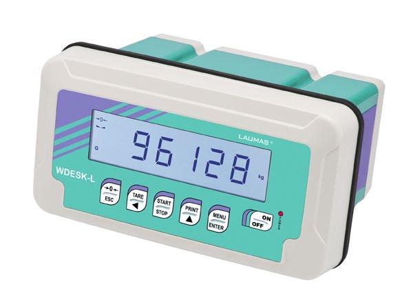 • WDESKL: Indicador de peso de mesa en ABS con 6 prensacables M16x1.5 (dim.: 122x226x164 mm). Grado de protección IP67. Display semialfanumérico LCD retroiluminado de 6 dígitos de 20 mm y 7 segmentos - 46 símbolos de señalización.