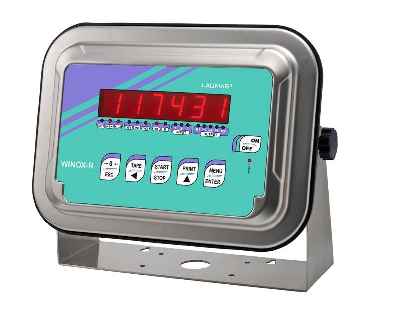 • WINOXR: Indicador de peso de acero inoxidable AISI 304 con estribo regulable (dim. con estribo: 206x290x187 mm; dim. sin estribo: 206x286x108 mm). 6 prensacables M16x1.5. Grado de protección IP68*. Pantalla semialfanumérica LED rojo, 6 dígitos de 20 mm - 16 LED de señalizacion.