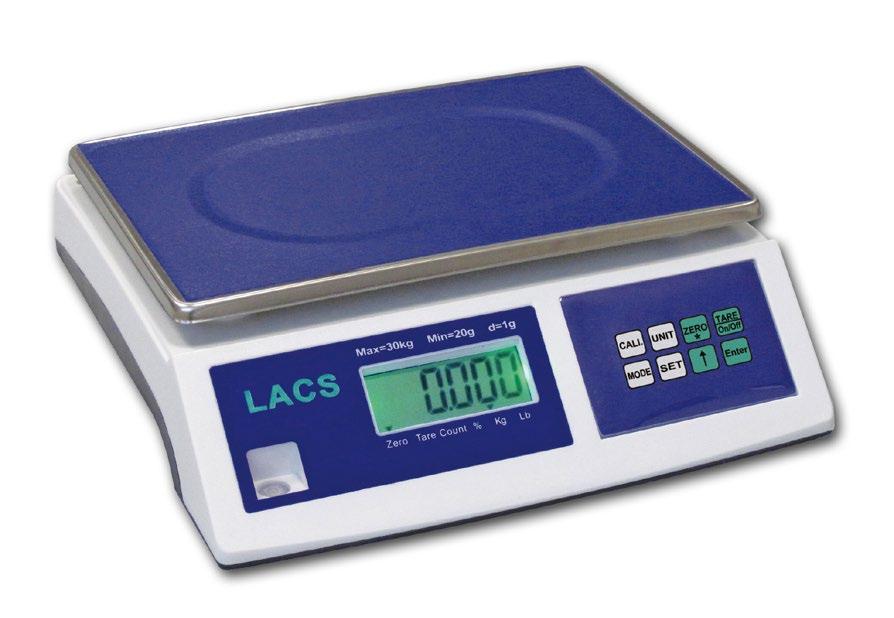• Indicador de peso de mesa en ABS (dim.: 315x315x170 mm). Grado de protección IP40. Reloj-calendario con batería tampón.