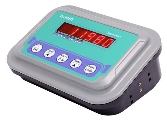 • Indicateur de poids en ABS (dim.: 120x200x280 mm). Degré de protection IP40. Écran semi-alphanumérique à DEL rouge, 6 chiffres de 20 mm. 8 DEL de signalisation. Clavier à 5 touches. Horloge/calendrier avec batterie tampon.