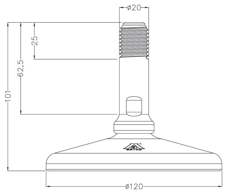 On request: pluggable hygienic foot, with holes for fixing to the floor.