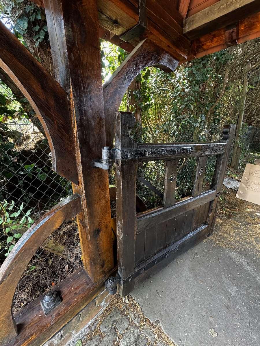 The lychgate, looking much better since being repaired and treated by GeoffBall