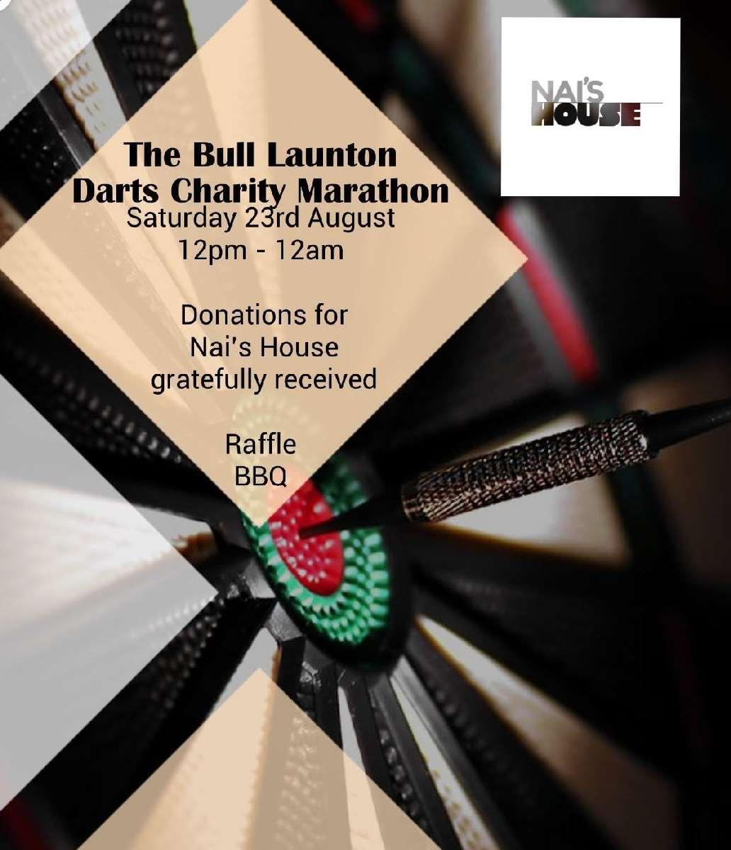Sat23DartsMarathonatTheBull,inaidofNai'sHouse.Seepage42fordetails