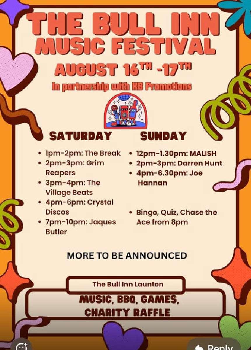 Withhighsummer,therearemoreevents.SendindetailsofeventsattheSportsandSocial,atthepubs,at sportsteams,andfromvillageorganisations,tolauntonlines@launton.orgforaFREElistinghere.