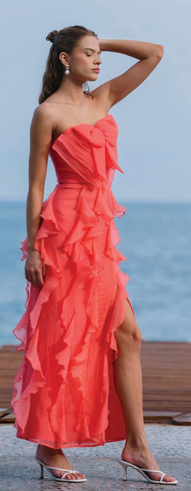 This doesn’t have to be all-out-next-to-nude. A hint of skin at the waist, a lower-than-usual neckline or plunging back also excite. The crop top nods at this trend.