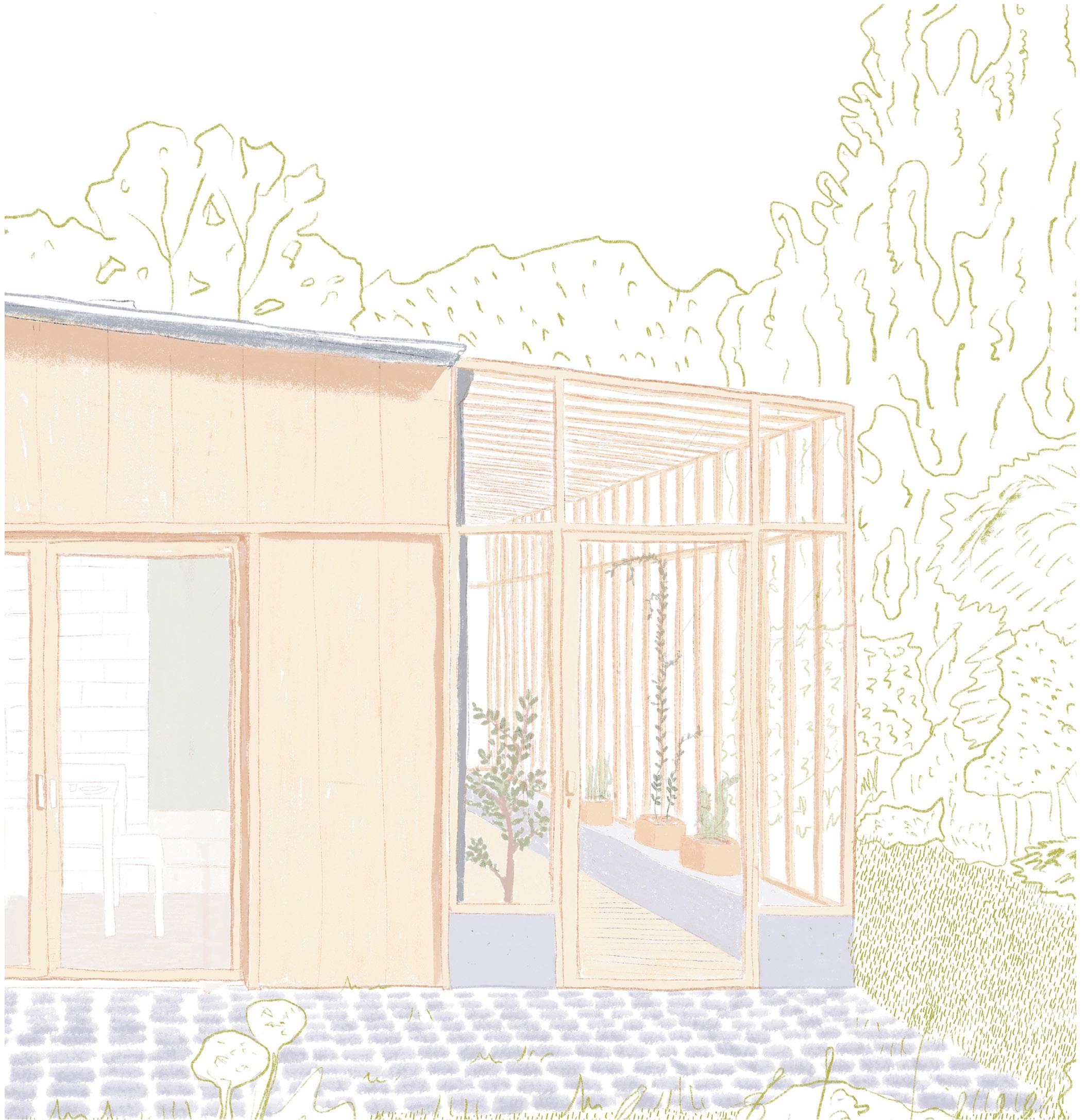 Dessins de conception d’une maison individuelle: Perspectives extérieures au traits + coloréés sur Procreate.