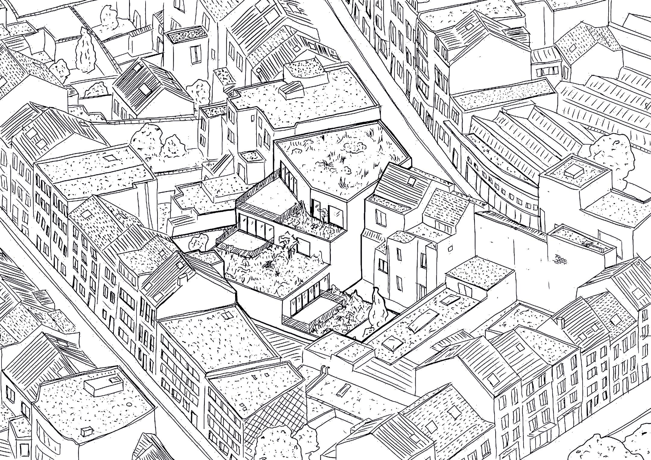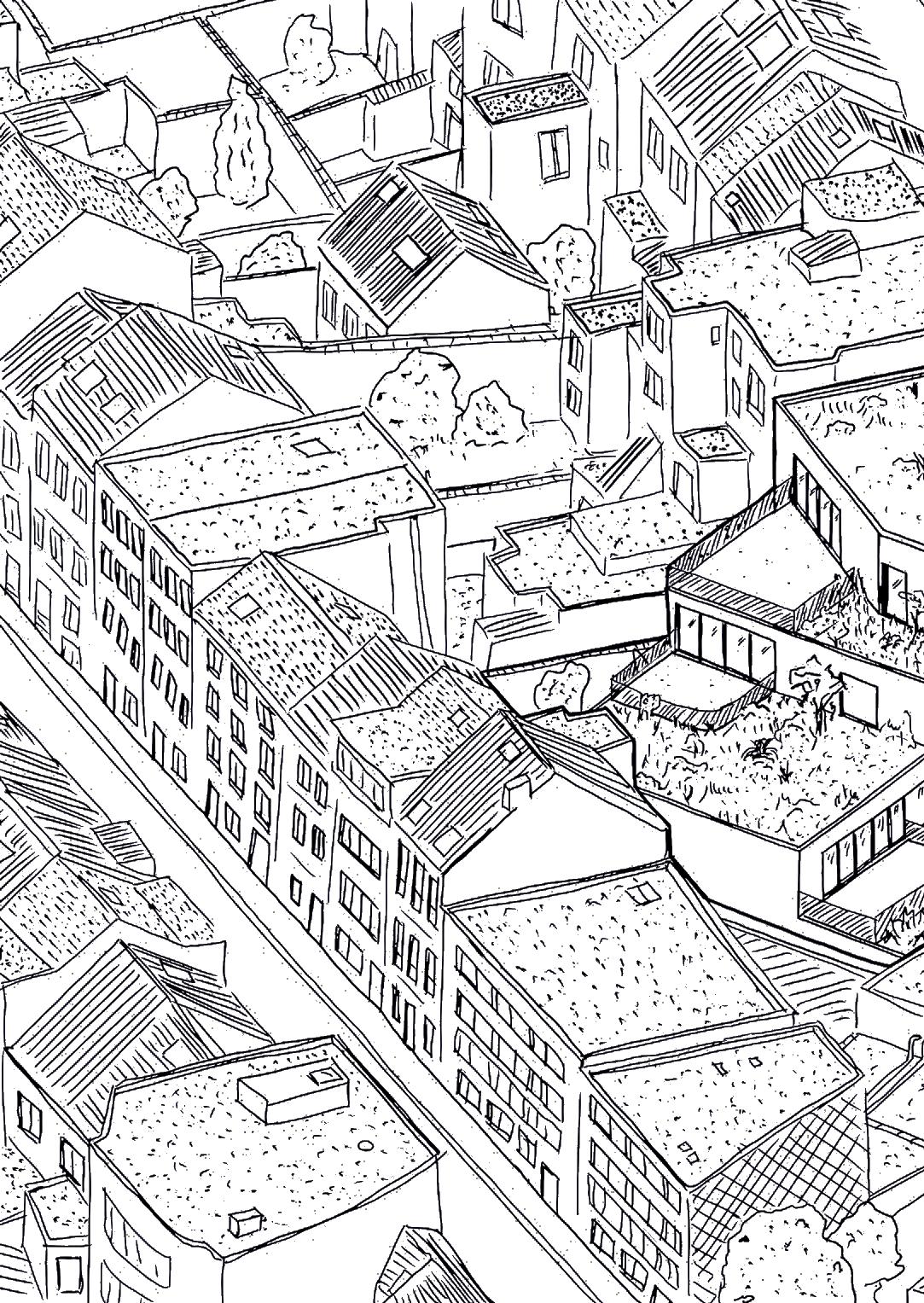 Série de 3 illustrations : Perspectives extérieures au traits sur Procreate.