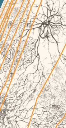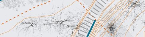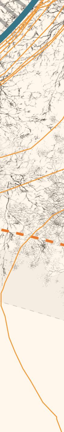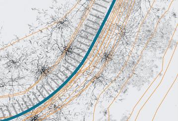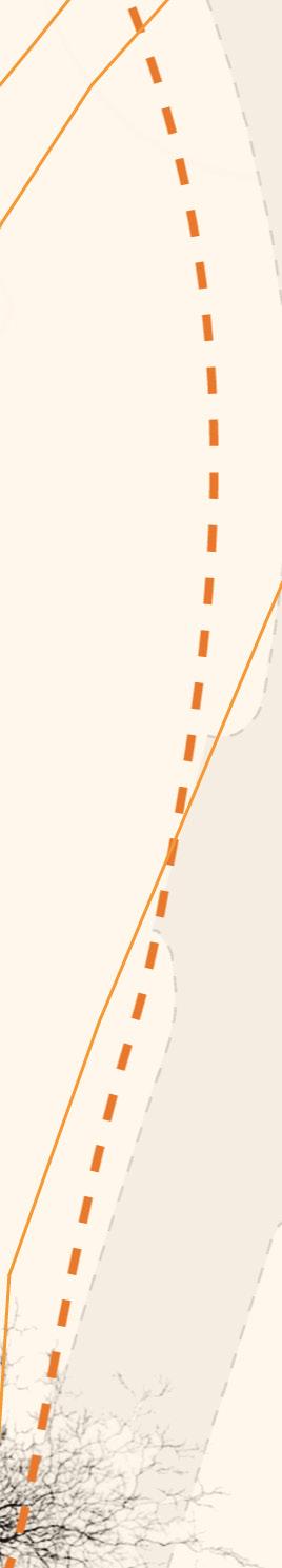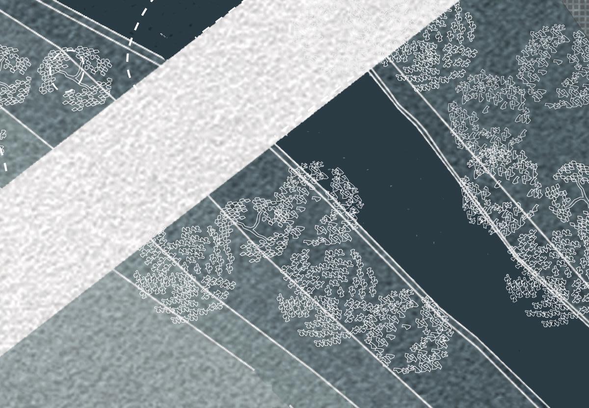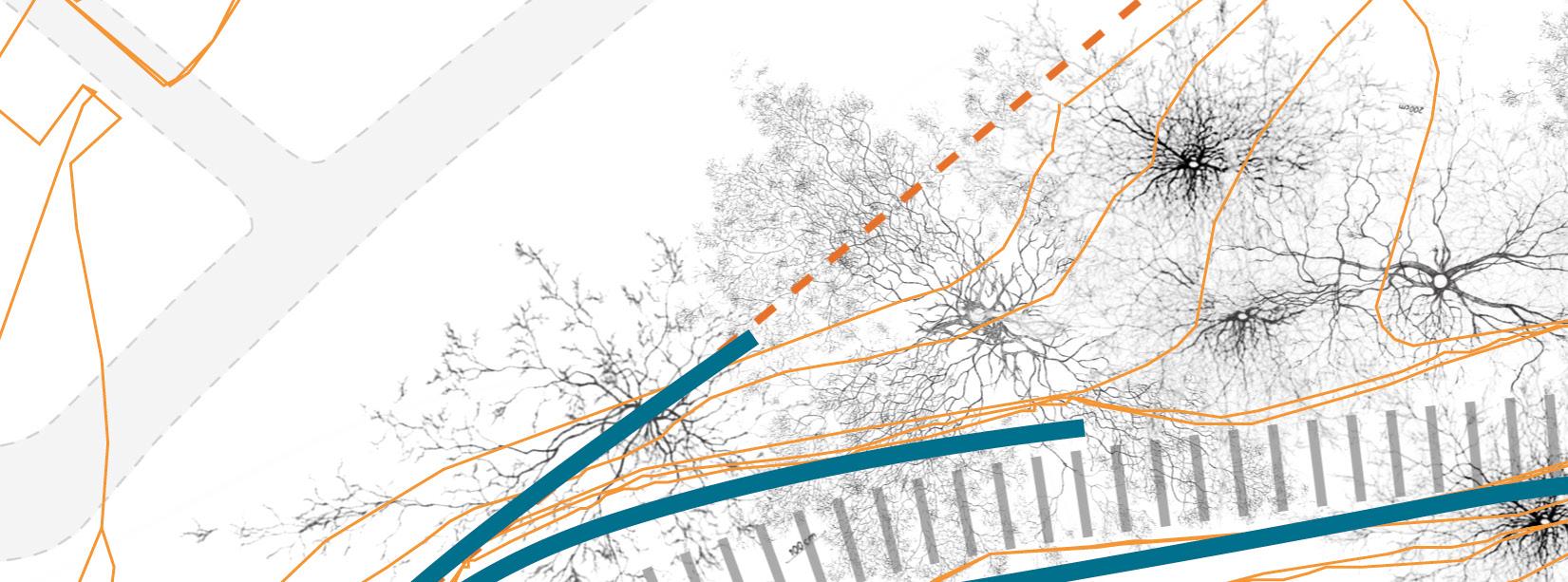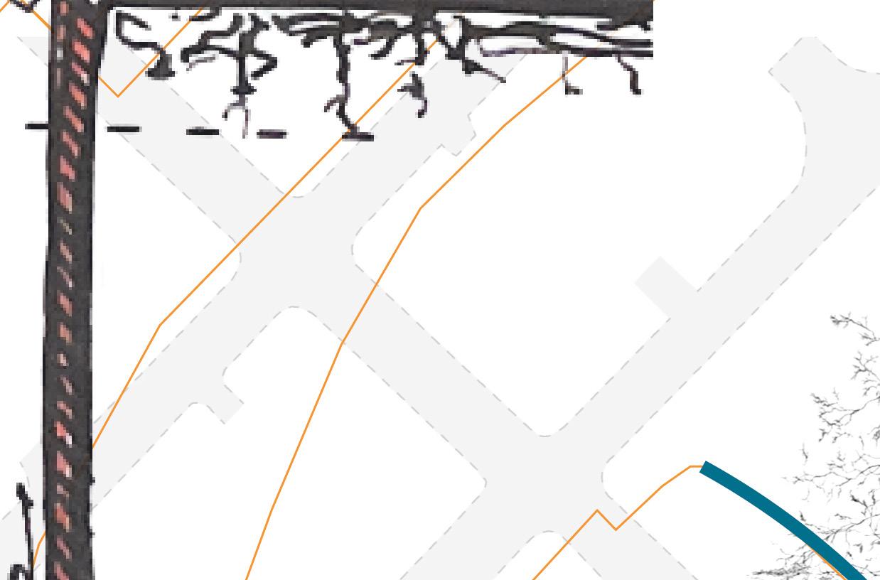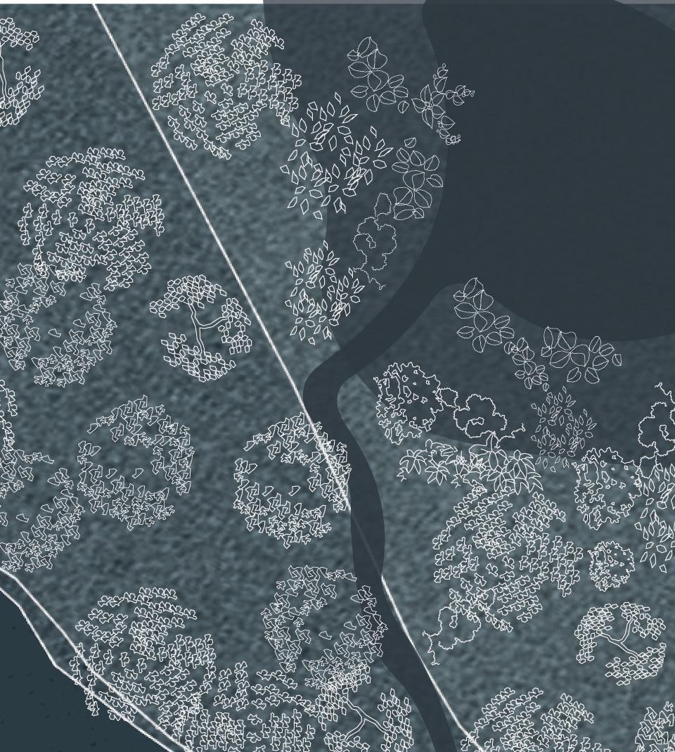 In this context, ‘mother trees’ (the older trees) play a massive role in helping seedlings develop into healthy trees, as the number of connections is directly proportional to the age of the tree. On the site, this connection is broken by an abrupt level change (blue line). My plan is to patch up this separation between the vegetation on site by creating a connecting system from above using mycelium.