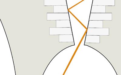 The terracotta bricks become structural at the end of the tunnel, in the spiritual space; the only interior space with the same buildup as the exterior walls