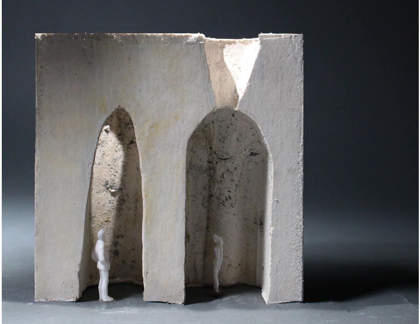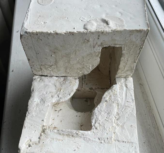 Step 2: The brick is then casted in plaster, in order to capture a negative volume of the original brick.
