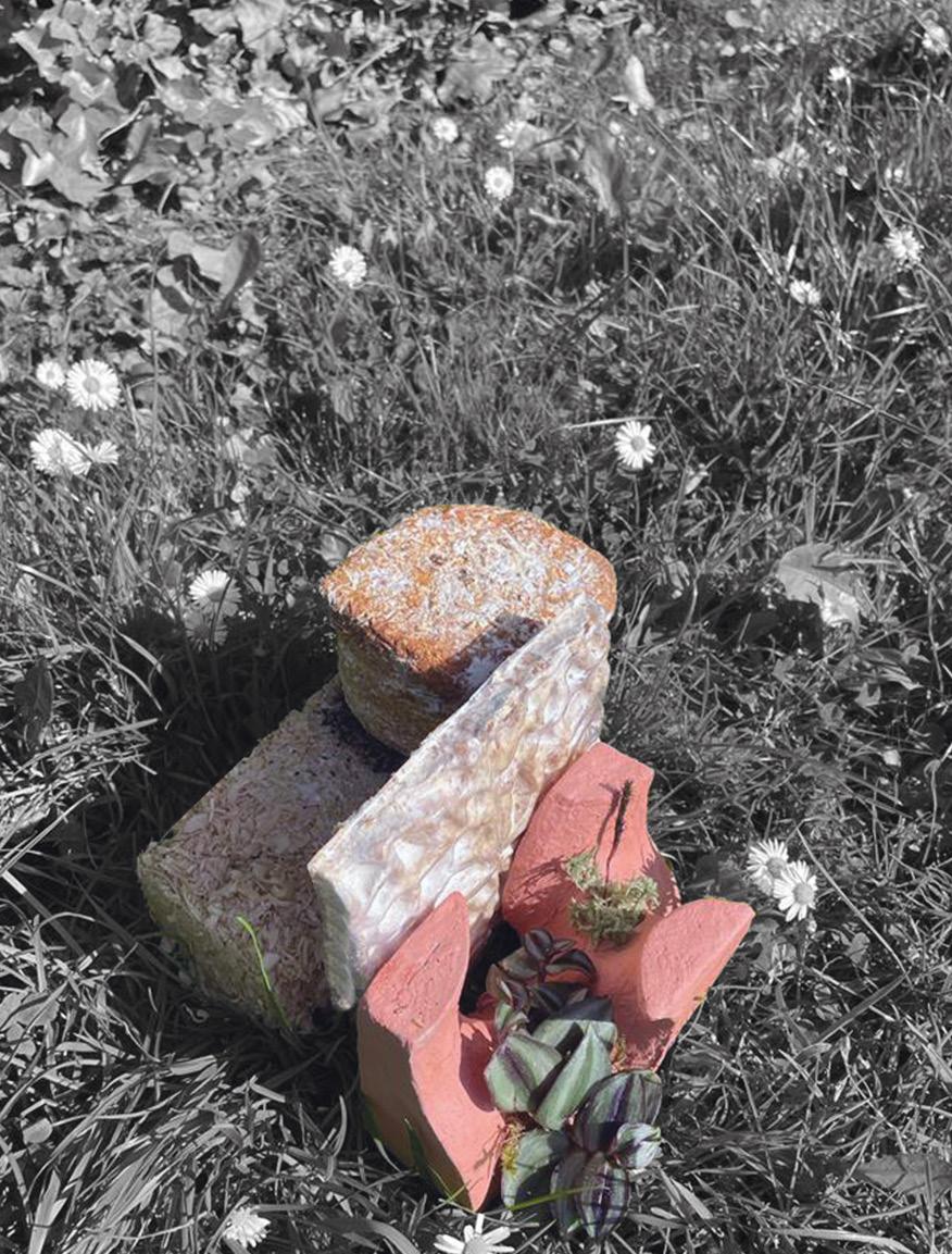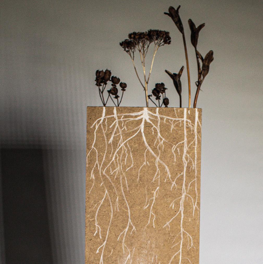 While mycelium is growing in popularity as a building material, it has only been used after being dried in ovens for a prolonged period of time. This process strengthens the mycelium but also kills it. My environmental strategy is based on the connections created between mycelium and other forms of life. This implies that the mycelium has to be kept alive