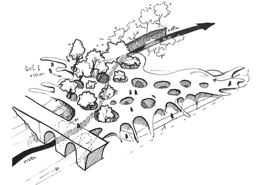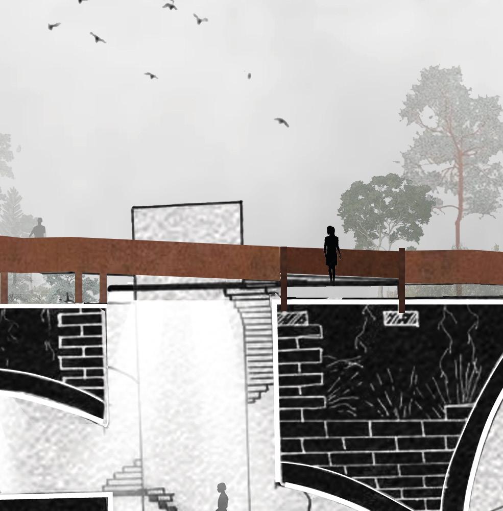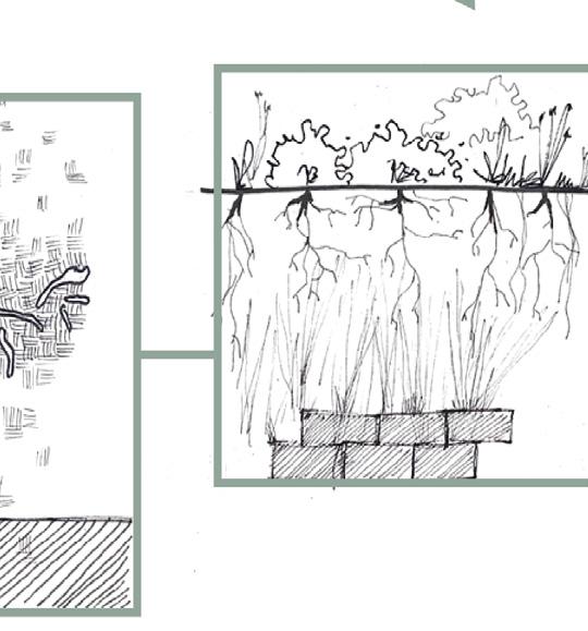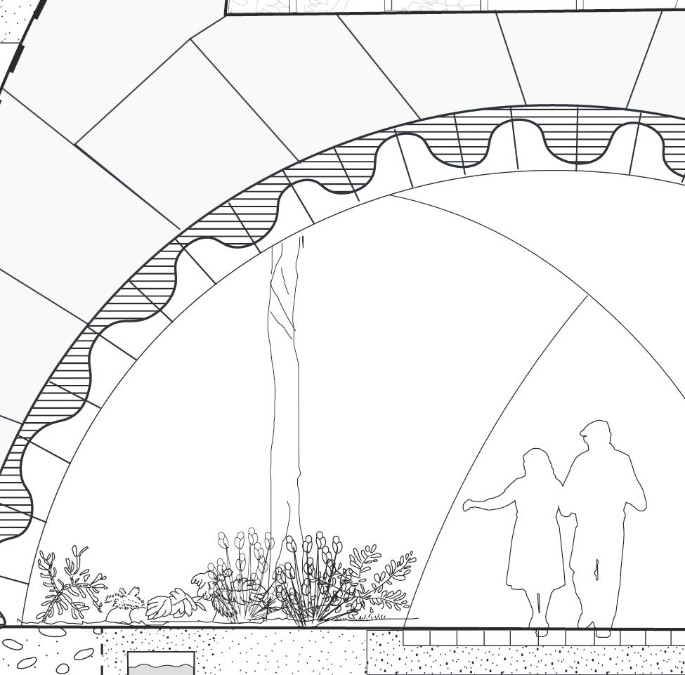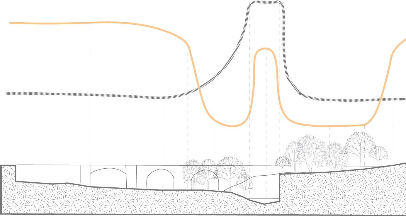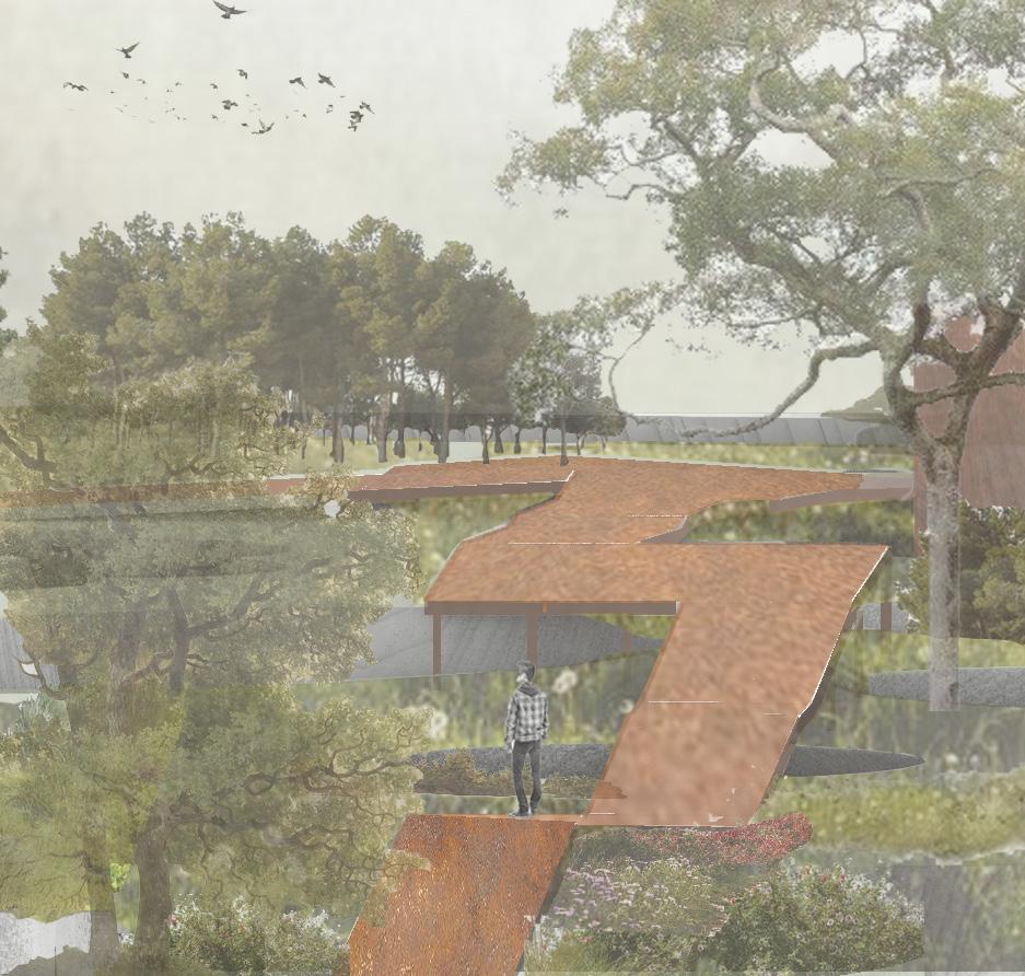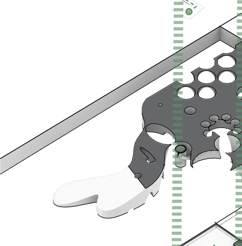 The proposal creates a new landscape, while ensuring the health of the new green areas by creating connections between it and the exising vegetation. Furthermore, the construction bridges the gap of connections existing on site (in terms of underground networks) while also linking insects and humans in this ‘designed’ cycle of nature.