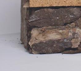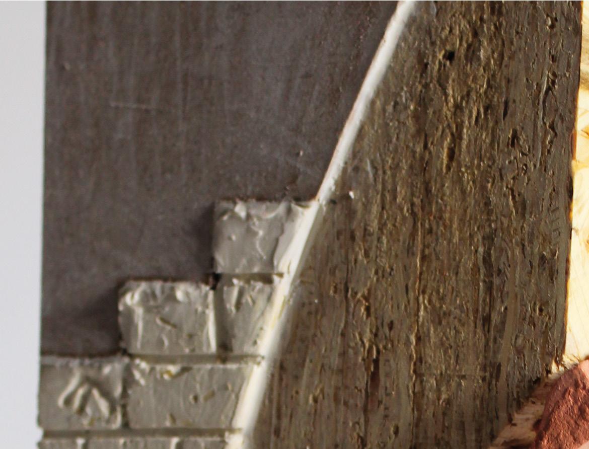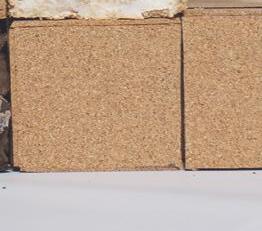The only viable solution of creating a continuous insulation layer was to insulate on the inside of the structural element. Given that the insulation is now exposed, I am using this opportunity to create an exhibition of bio-based insulation alternatives. This includes cork, bark and dead mycelium. The U value of 75cm of rammed earth+30 cm of bark insulation is 0.19. In the case of cork, it is 0.1, and for the mycelium, it is 0.07. Given that at the base of the building contains ‘unintentional’ additional insulation (the living mycelium bricks), I am placing the insulation with the worst performance there (the bark), while the insulations with better performance will be placed higher up. This creates a mosaic effect for the interior of the cafe.