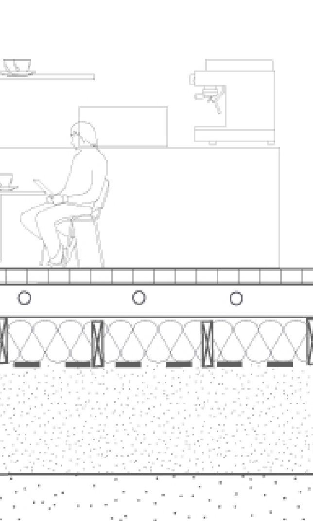 The timber is then reused for the joists supporting the insulation within the cafe and exhibition spaces.