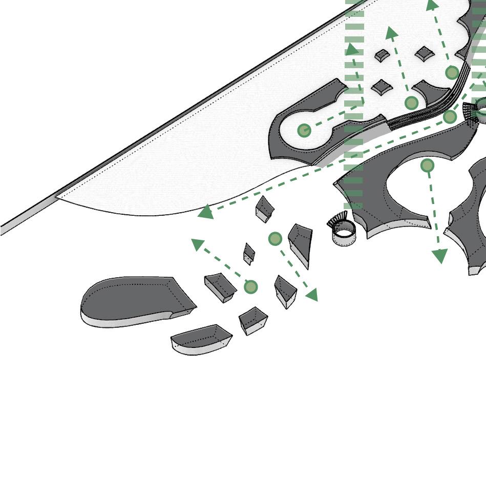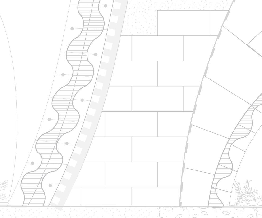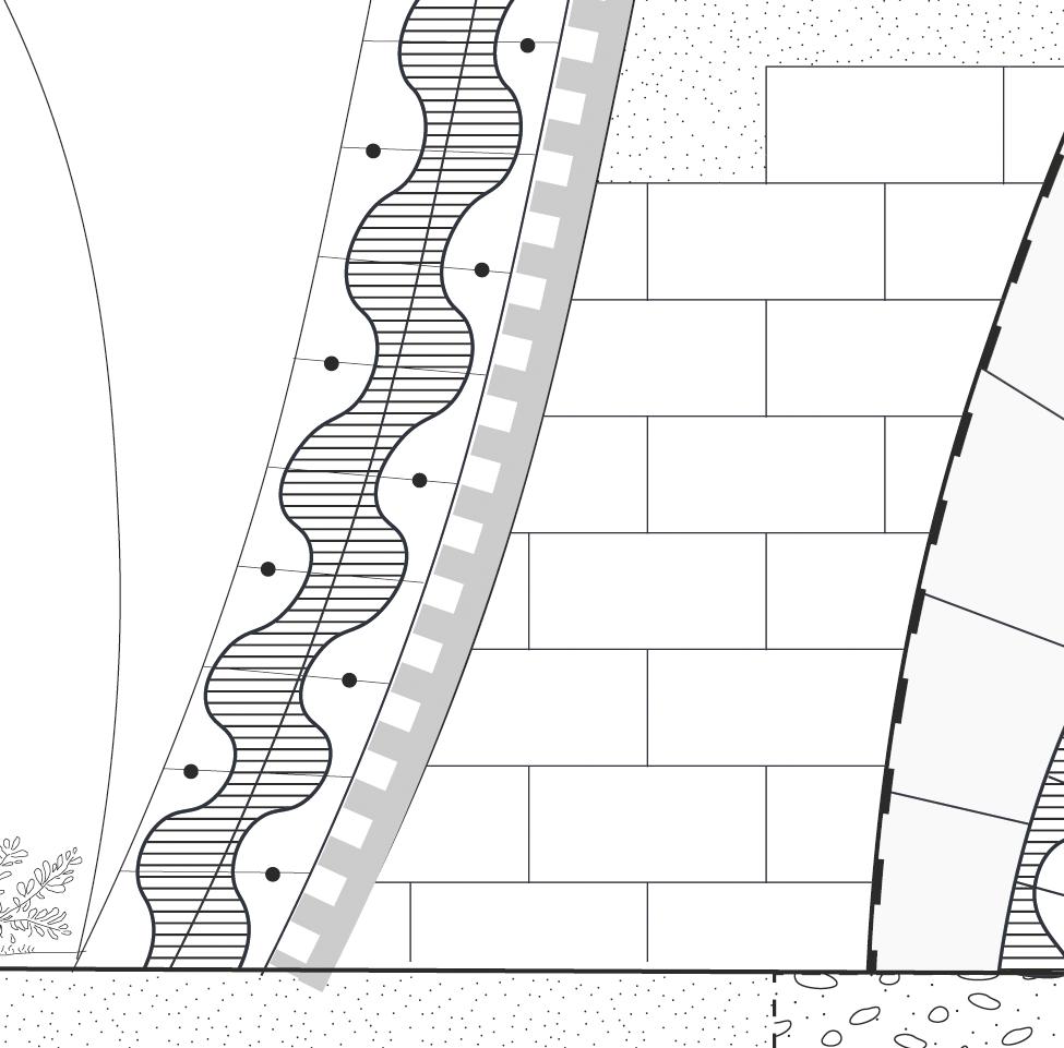 Instead, the bricks will be fabricated out of terracotta, making them water resistant, while also fitting in better with the aesthetic of the city. Furthermore, the original bricks were tested with no additional loads, this is why I opted for doubling the metal reinforcement and scaling down the bricks by a forth of the original size. While planting in the gaps of the bricks is not going to be done manually, but rather let into ‘the hands of nature’ the holes have been reduced in size.