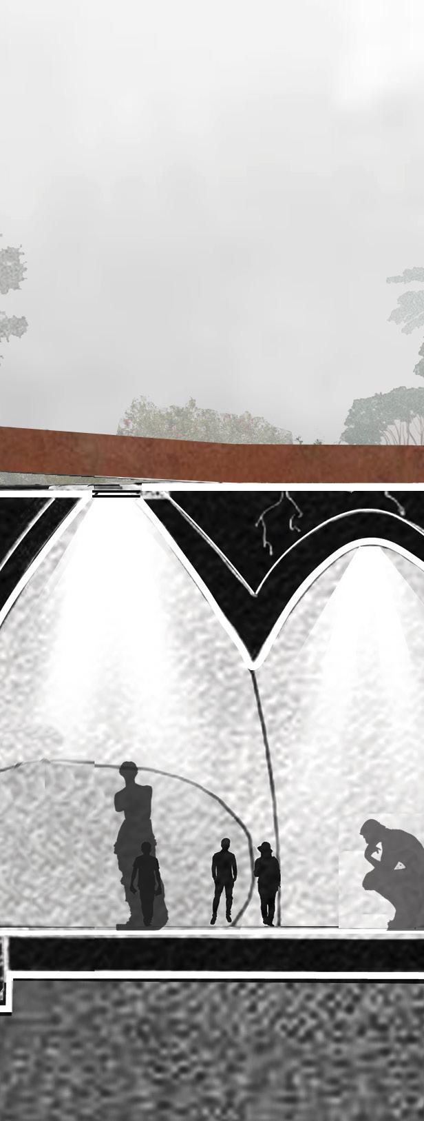 2. Going through the exhibition spaces, where sculptures and artistic installations related to climate change awareness can be found