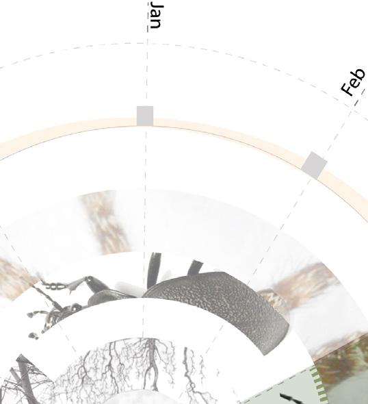 This indicates a high level of utilisation in spring, while the activity of the ‘living building’ is reduced in winter. regardless, even if the ‘methabolism’ of the intervention slows down, with mycelium, plants and insects being inactive, the proposal still offers a place of refuge for insects in diapause.
