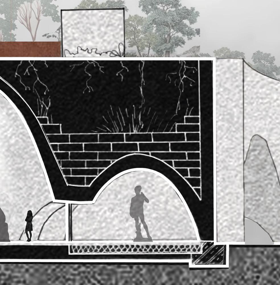 While the significance of each space is kept from 3.1, I decided to further develop the spacial qualities of the intervention, mainly for differentiating the exhibition spaces from the spiritual spaces and for amplifying the feeling of being in a different world than the one you came from.