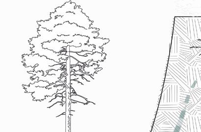 The timber used is sustainably sourced from the site. This means cutting down the trees between 5 and 15 years old that can be found where the architectural intervention is to be placed. All trees older then 15 years are protected and incorporated within the design, as they play a crucial role in helping new seedling develop.