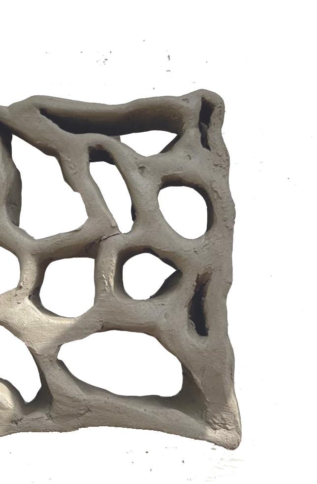 These structural rammed earth bricks have been presented as part of the 4th International Architecture Biennial of Antalya (IABA). They meet the requirements of my design by allowing access through for fauna, letting sun through (necessary for the flowering stage of the mycelium) separating humans from the mycelium and providing structural stability. In order to accommodate the voids necessary for plants to grow and have access to sunlight along with generating continuous surfaces to direct rainwater to plants, research on minimal surfaces had been done using digital modelling techniques. The bricks are manufactured from rammed earth using a mould.