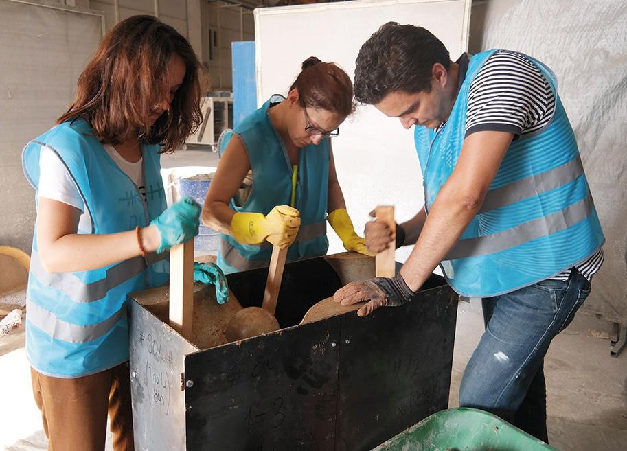 Step 2: fitting together the rammed earth bricks and terracotta bricks to create the structural frame