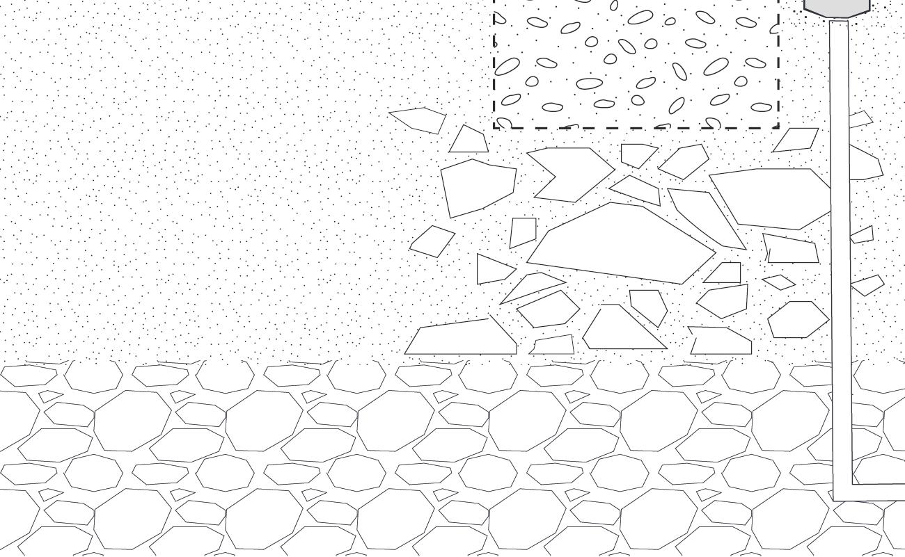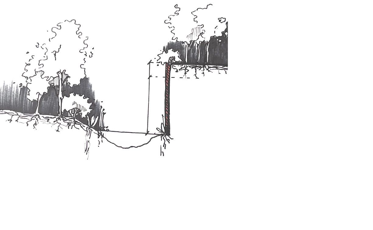 Several drastic level changes break the connection between root systems. The roots of the most common trees on site usually only go down up to 2m.