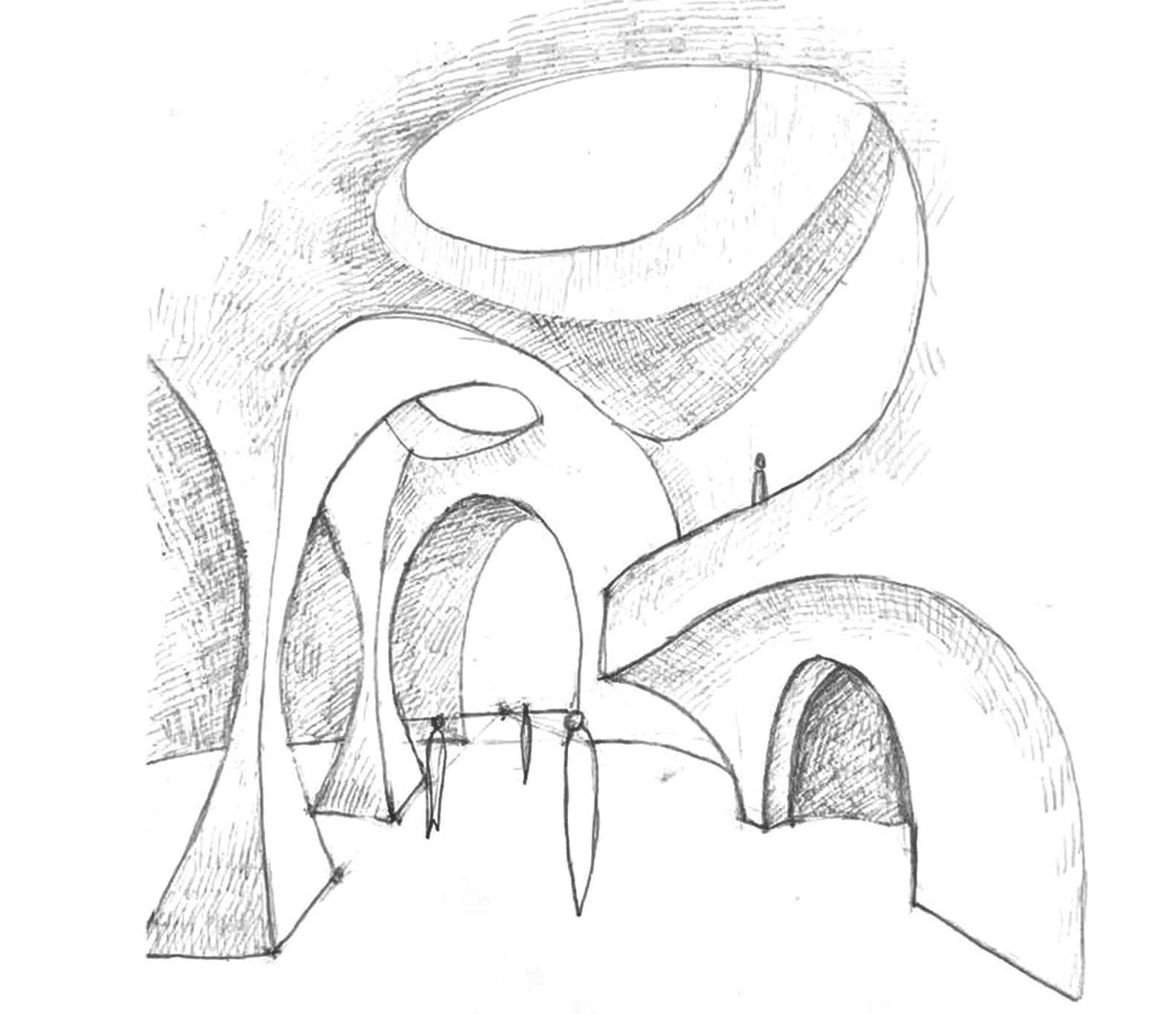 Cappadocia shows full villages carved within Mount Erciyes, with elaborate ventilation systems and vertical connections. What fascinated me about them is a certain ‘non-human’ quality of the spaces (amplified by the resemblance to an ant’s nest). This is something I tried to capture with my proposal by adopting the same method of design: subtraction.