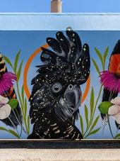 Karine Tremblay is an Alice Springs based artist. She has been in Alice since 2010. Karine was born in Montreal, Canada where she obtained a Bachelor degree in Set Design. Focusing on set painting in her early career, it saw her work for circuses and theatre productions in Canada and China. In the last 10 years she has developed her painting skills to create portraits and larger scale murals where she feels the happiest. Karine’s style of work integrates native flowers, birds and feminine lines to underscore her concern for climate change and the impact on local biodiversity. We last caught up with Karine at the 2021 Street Art Festival where she painted the mural Irrarnte at the Hospital.