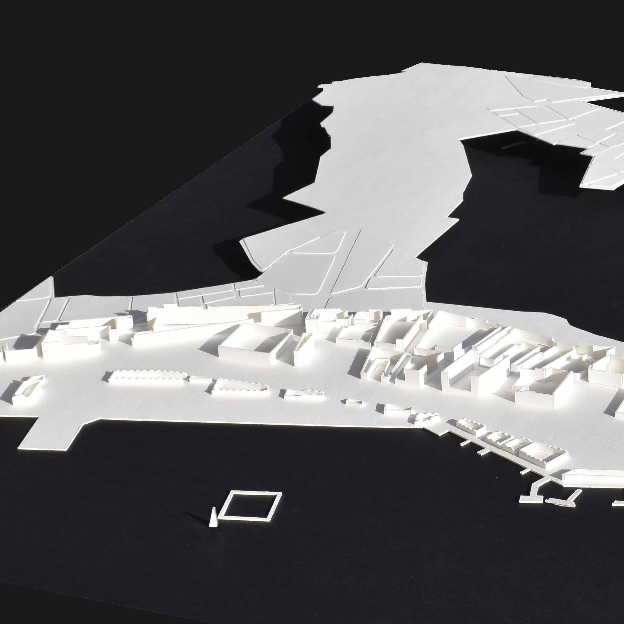 The project appears as an island, a water square in the middle of the river. facing the Santos quay and located at the end of the Valley of São Bento. A project in which the river plays a central role, as important urban element in itself, a curtain, a scenography. The river and its riverfront as elements of separation - natural boundaries - although equally at the same time of union, capable of welcoming and animating the urban spaces themselves. The desire was therefore expressed to reconnect the area of the Santos quay within the wider urban mosaic through the water, reconstituting the line of the city’s riverfront and at the same time crossinge the Valley of São Bento, extending its space into the water. The project itself therefore dialogues with both the articial aspect of the city and with the natural aspect of the river, materialising in a space of encounter, while at the same time always guaranteeing a more intimate dimension, especially in its interior spaces. A project that thus demonstrates the will to enclose within itself a collective and a private dimension, as well as being an expression of an urban scale and a human, architectural one.