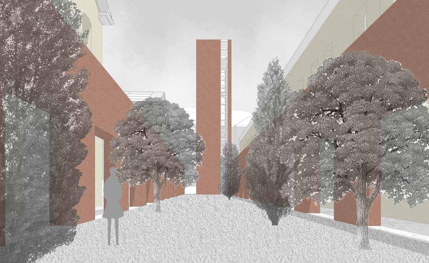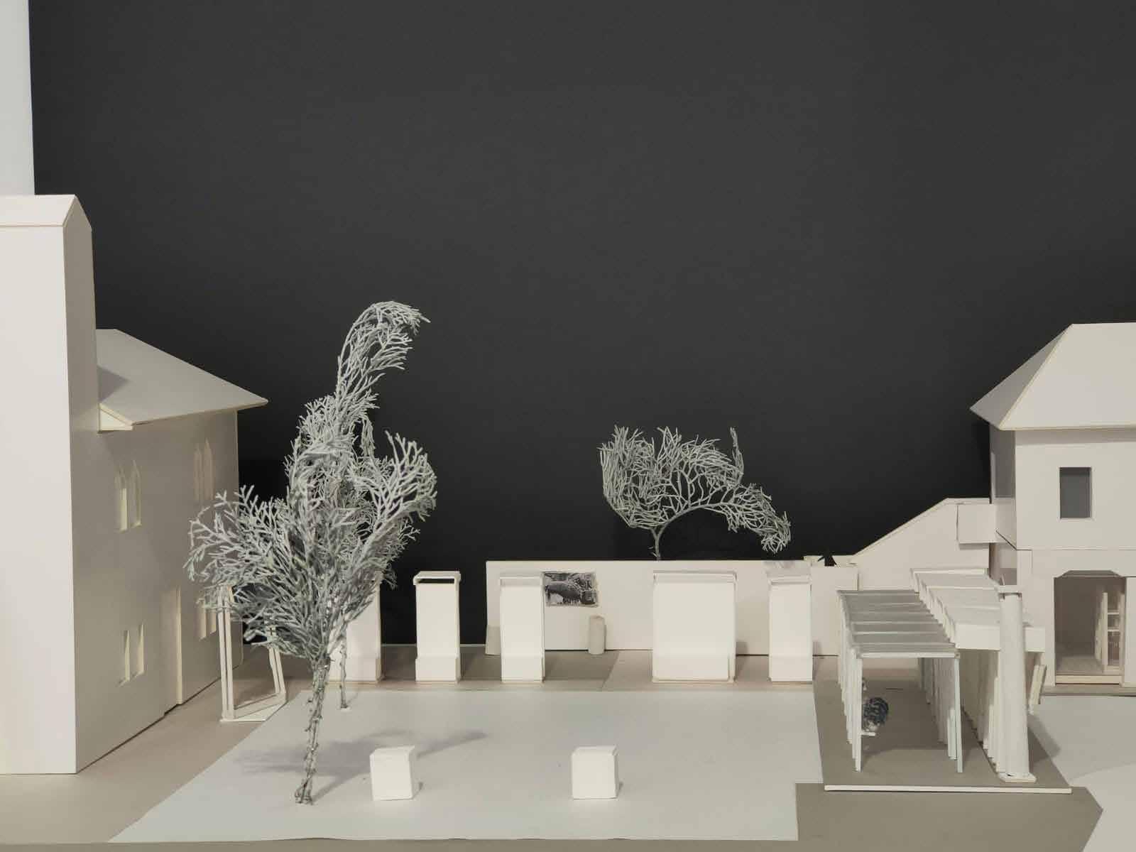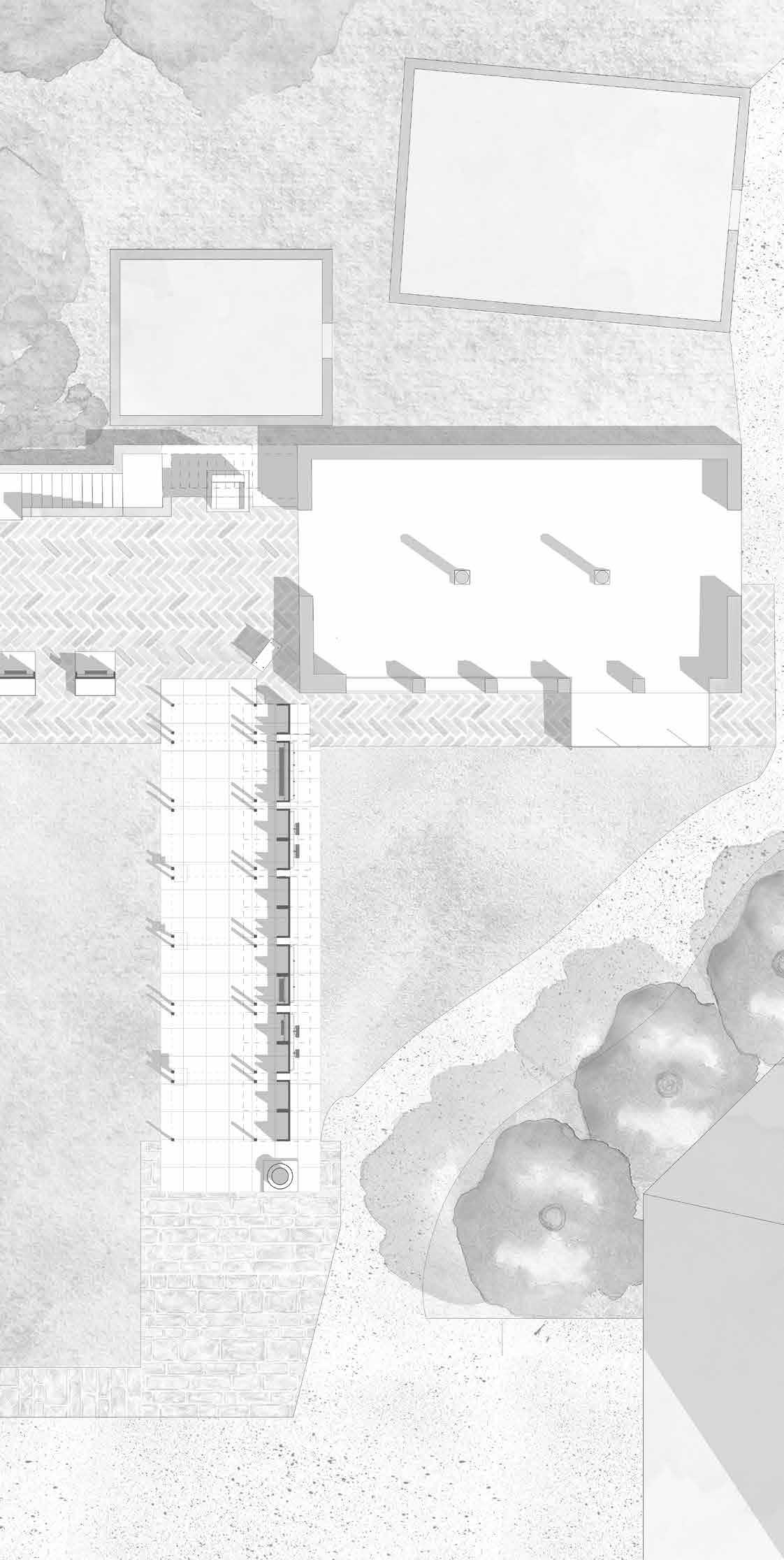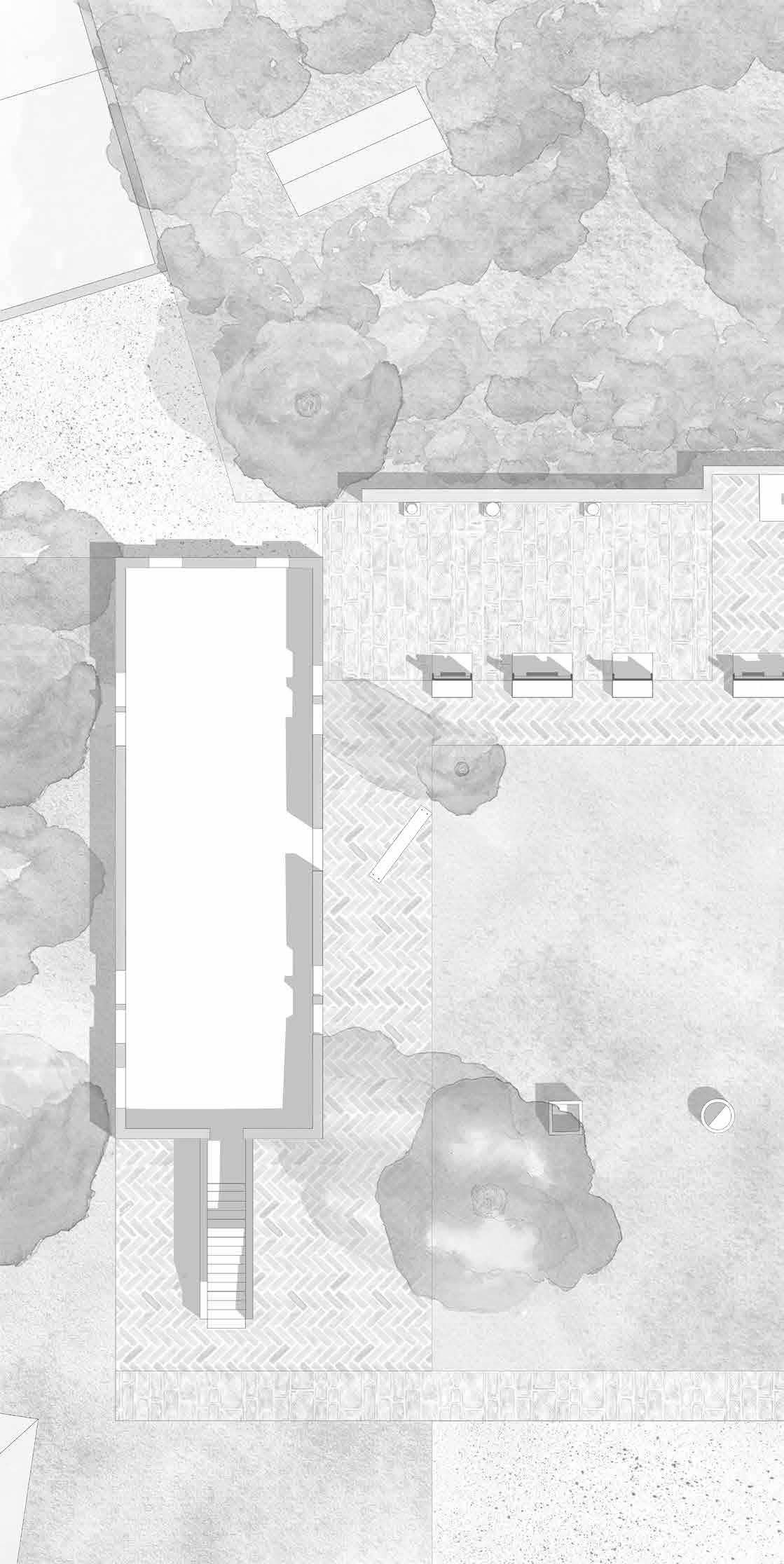 Configuring a sequence of rooms was the guiding theme of the project, giving shape to the desire to define a series of places, of urban rooms, and constitute a magical space, a meeting point, within the city. The buildings of the former convent of Sant’Antonio Abate - later the former military district - form the setting for these spaces. The interiors have been redesigned and rethought in relation to their pre-existing identity, enhancing certain characteristics and revealing new ways of being inhabited. Flexible and open spaces constitute the most public character of the new project - capable of hosting different functionswhile more private spaces open up instead on the upper floor, for the use and enjoyment of the citizens themselves. The porticoed space on the right also acts as a connector between the central courtyard - a metaphysical space animated by five characters - and the green belt that embraces and binds the different rooms. This outlines the leitmotif of the project, the continuous dialogue between nature and abstraction. The narrative continues on the different types of outdoor and architectural greenery. Beyond the metaphysical courtyard - an abstraction of nature - we thus find three types of garden: the urban garden, enclosed by a curtain wall near which stands a tower, its access portal and a privileged observation point over the city and the Livenza river; a winter garden used in the pre-existence, open and at the same time strengthened by consolidation works; and a controlled green, inside the glass volume of the Greenhouse.