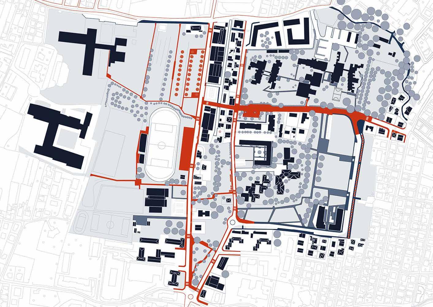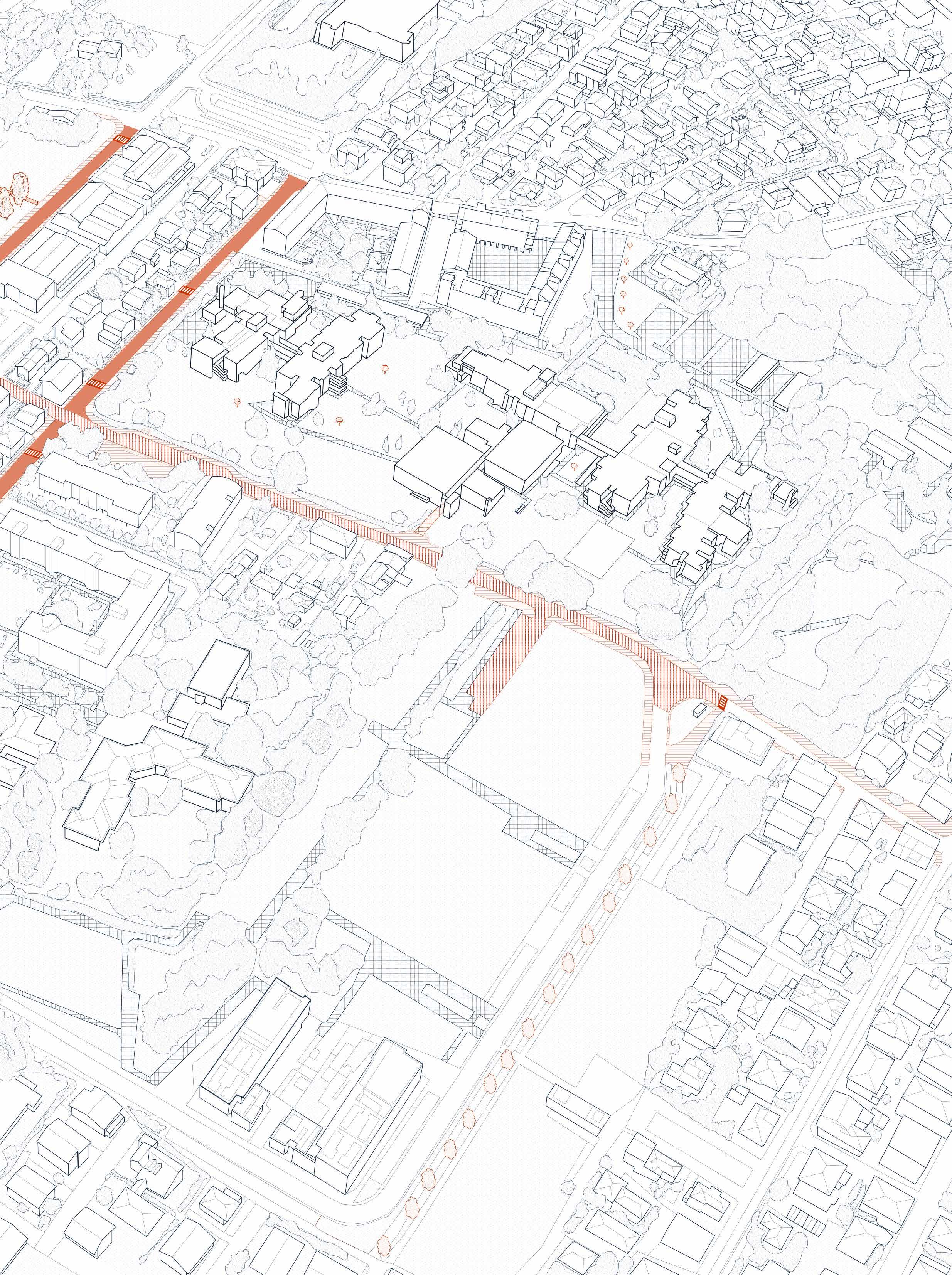 Taking a cue from the lessons of Bruno Secchi, Jane Jacobs and Jan Gehl, the redesigning of the land became a design opportunity to rethink the public space of the Gazzera district, in Mestre, making it a permeable place easily usable by the population, focusing on the centrality of active mobility and connoting the streets as spatial realities to be inhabited - rather than mere infrastructures. Thus an attempt was made to configure the connective space as the very (green) heart of the community, fostering a sense of belonging to the place.
