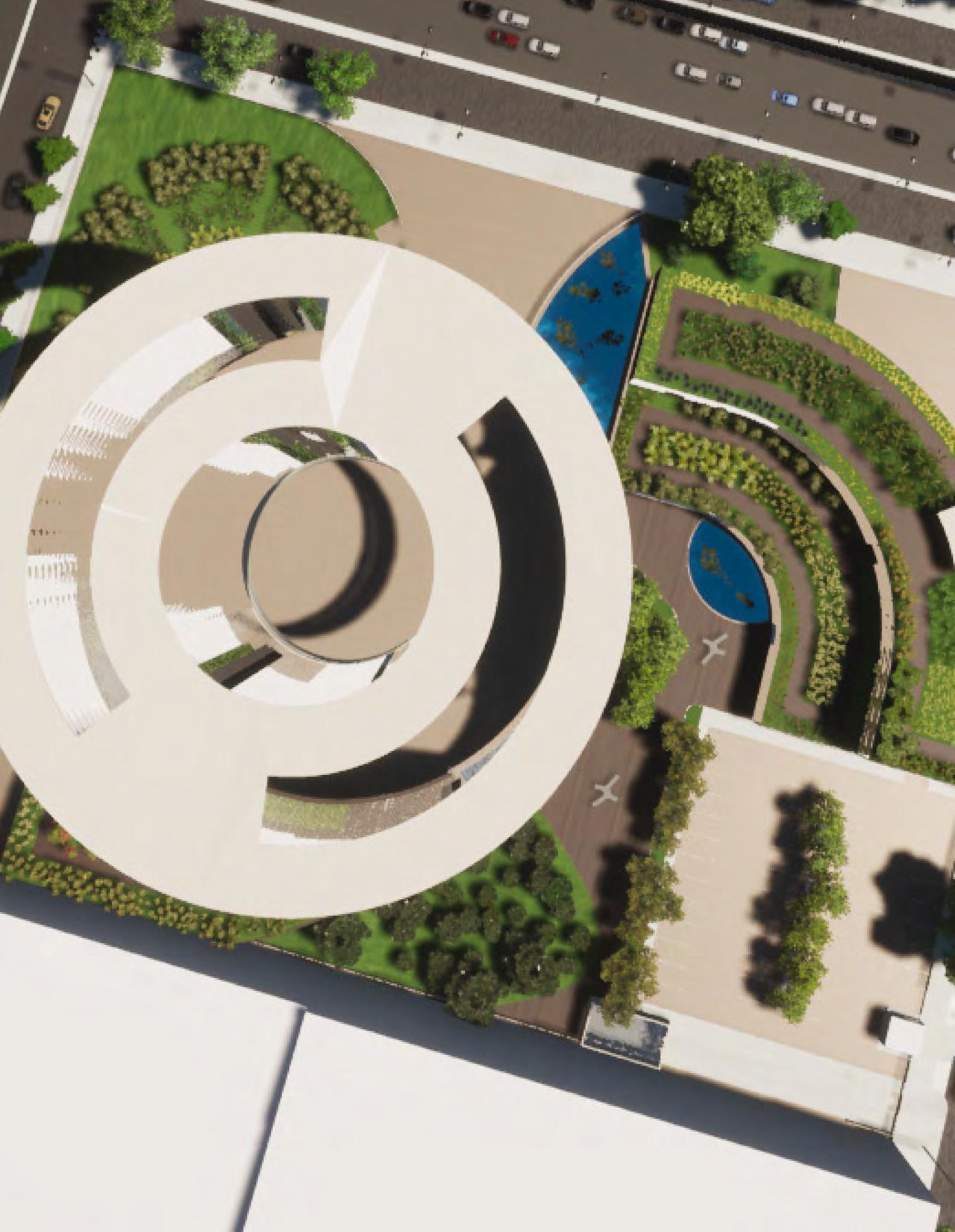 El concepto que se tomó para desarrollar el proyecto fue la dopamina. La interpretación que se toma es la siguiente: La dopamina es como una explosión que se expande a todos lados. Esto llevo a un eje de composición que tuviera un origen y se moviera como un proyectil. Se deja la estructura aparente al interior del edificio para hacer referencia a los huesos del cuerpo y que junto con los músculos son el sostén del cuerpo, mientras las fachadas representarían la ropa con al que nos vestimos, Por medio de distintas texturas, y colores se busca hacer referencia a esta variedad de corporeidades que hay y mostrar como pueden convivir perfectamente cada una en su propia estética.