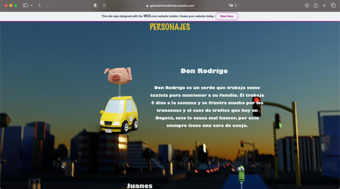 Website for the game I did, showing the what's about, of the game, characters, how to play and credits.