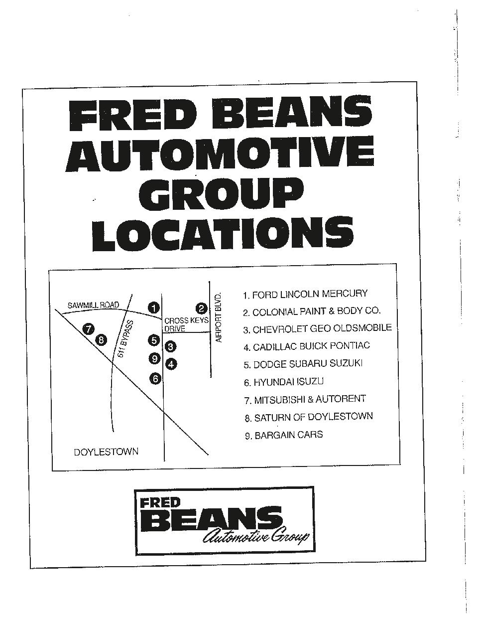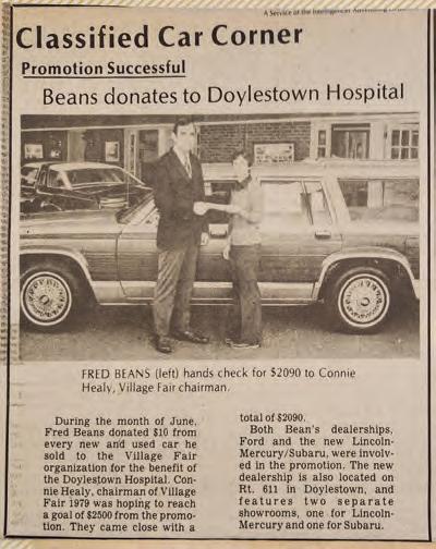 Fred purchased Mel Harris Ford on his own in April 1975. That August, he moved his wife and three daughters to Doylestown. In September 1975, he changed the name of the dealership to Fred Beans Ford.