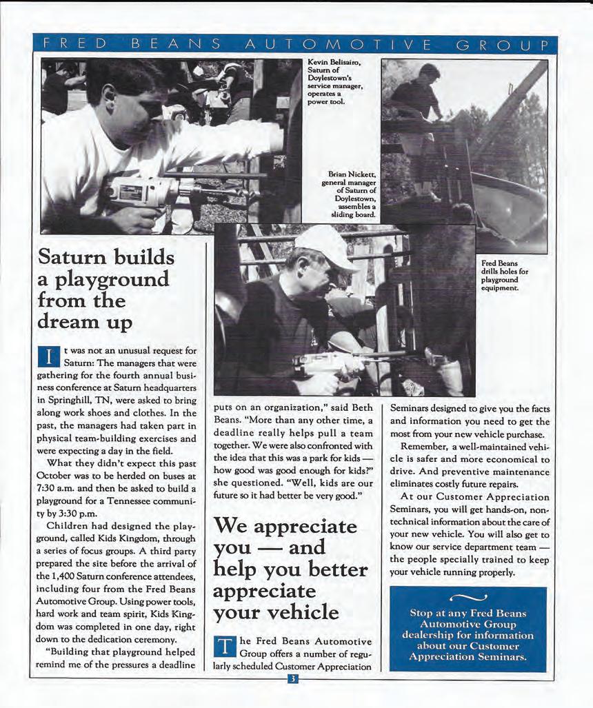 Such a role was important to Fred, who built the Fred Beans Automotive Group around the customer experience. “Dad cares; he genuinely cares about the people who walk through our doors and the people who work for us,” says Barbara. “He still gives out his cellphone, and he still answers it. Over all these years, he remains true to his core beliefs to put people first.”