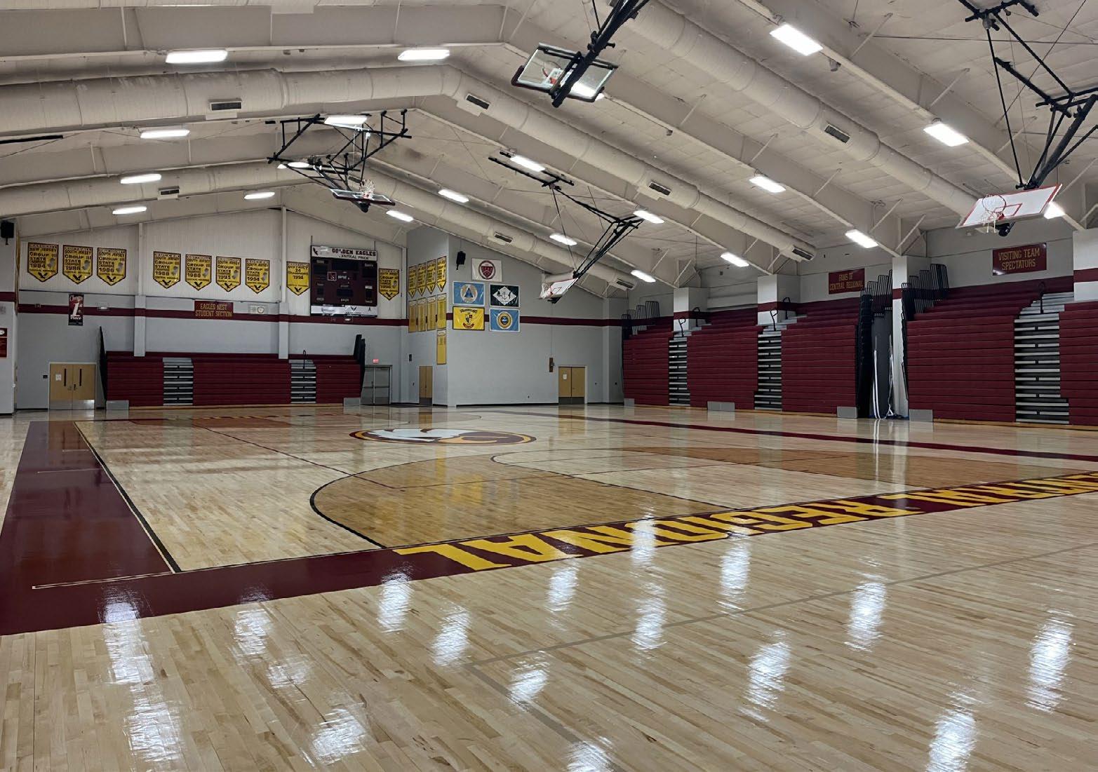 As part of the work, the gymnasium received new flooring; the auditorium, a fresh coat of paint on the walls and ceiling.