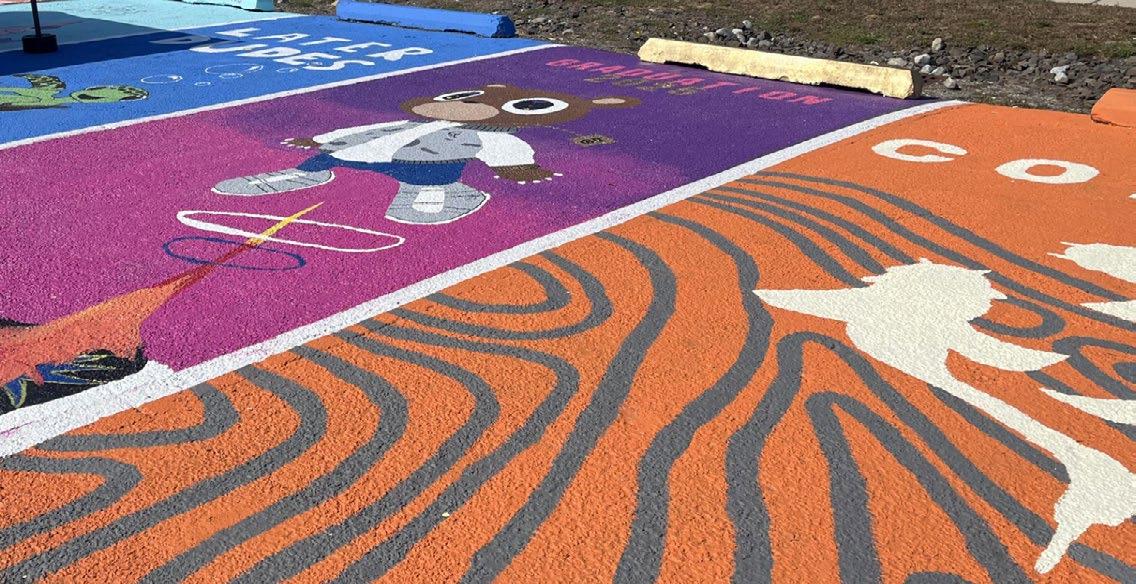 Central Regional High School senior Juliana Rindos paints her senior parking sport with her parents, Christina and Robert Rindos, the day before school started in September. "I grew up watching Spongebob and it was my favorite show, so I decided to paint my spot with a scene from my favorite episode."