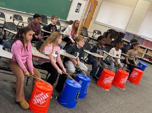 ELEMENTARY #2: This year, students can choose a club experience focused on sports, life skills or arts as part of the Panther Block. Those participating in the Mural Painting Club are brightening the school by creating murals and ceiling tiles. Students who joined the Bucket Drumming Club have spent the season learning rhythm skills.