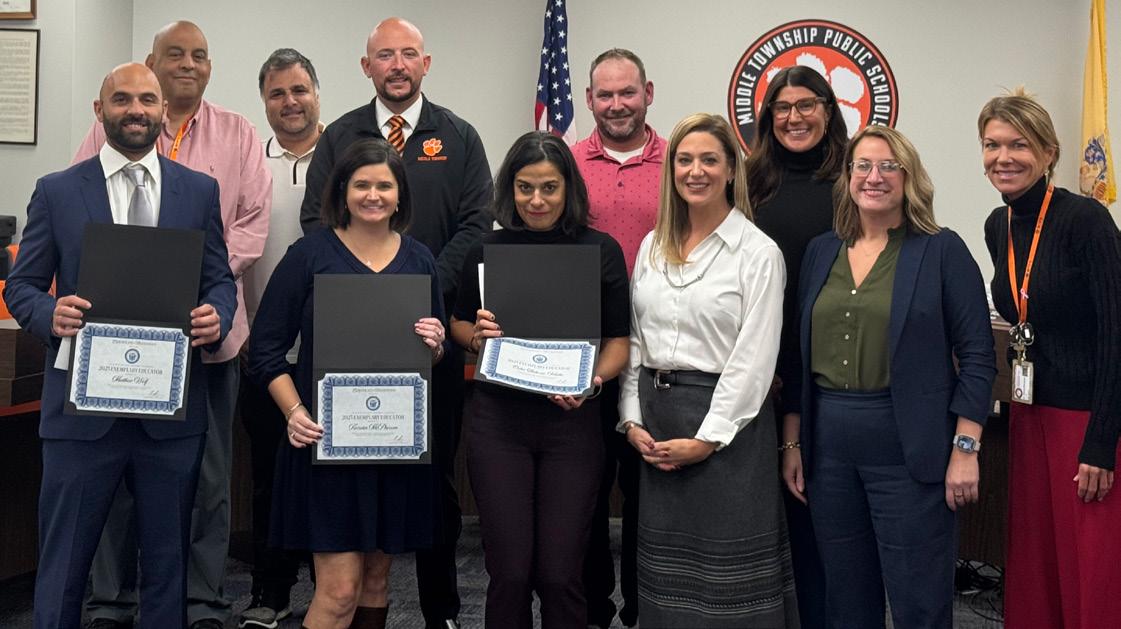 Congratulations to Middle Township High School teachers Matt Wolf, physical education; Keirsten McPherson, Language Arts; and Celia Llaberia, Spanish; for receiving the 2025 New Jersey Exemplary Educator Recognition Award.