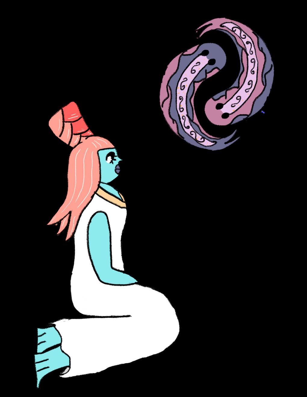 De rodillas, dos mentes y dos espíritus se unen en uno clamando a los dioses por ayuda.